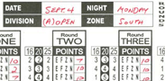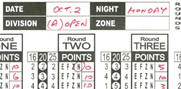 Match Scoring * After a Match Round has been completed, the Points won by the Players for each Team are totaled along with the Team Handicap. * The Team with the higher total receives a Team Point for that Round. * This is indicated by circling the "W" beside their Point Total. * After all the Match Rounds have been played (either 4 or 5 depending on the Match Format your Division is using), the "Points Total for each Round" are added together to arrive at Total Overall Points for all the Rounds played. * The Team with the higher overall total receives another Team Point for the OVERALL which is also indicated by circling the "W" beside their Point Total. * In summary, each Match is played for one Team Point for each Match Round played plus one Team Point for the OVERALL.