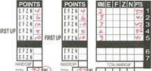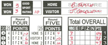 Special Feats * Provision is made for the recording of Special Feats such as E = ERO, F= First Approach, Z= Ten Zip and N=No Shot After the Break. * Be sure when you sign off the Score Sheet that the other Team has recorded the Special Feats of your Team as well.